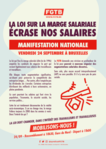 Vendredi 24 septembre, la FGTB organise une manifestation nationale à Bruxelles afin de réclamer une révision en profondeur de la loi qui fixe la marge salariale (loi de 1996). Cette loi bloque toute augmentation significative des salaires.